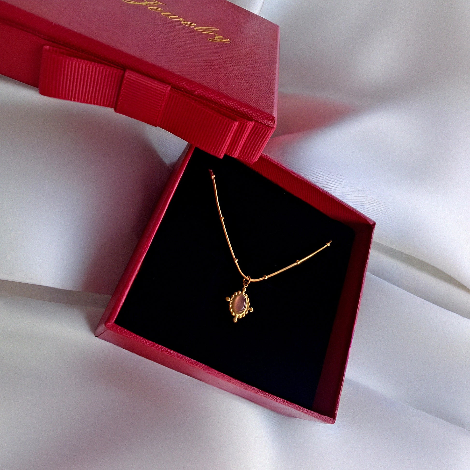 Mocha Frame kolye, kahvenin sıcak tonlarını vintage çerçeve sanatıyla buluşturan sofistike bir parça. Altın çerçevesi içinde yer alan mocha rengi taş, espresso tonlarının derinliğini ve sıcaklığını yansıtıyor. Geometrik çerçeve tasarımıyla modern zarafeti yakalayan bu eşsiz kolye, her bakışta kahvenin büyüleyici aroması gibi huzur verici bir enerji sunuyor. Toprak tonlarının doğal güzelliğiyle tasarlanan bu zarif parça, günlük kombinlerinizde sıcak ve sofistike bir dokunuş yaratacak.