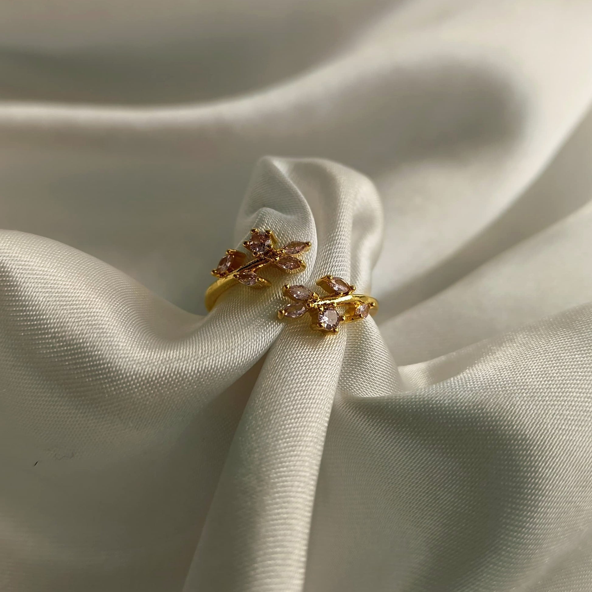 Nature's Crown yüzük, doğanın en zarif sarmaşıklarının altın ile canlandırıldığı organik bir şaheser. Parmağı çevreleyen ince dallar, sanki canlı bir sarmaşık gibi doğal kıvrımlarla sarılırken, aralarına yerleştirilen kristal detaylar çiy damlalarını andırıyor. Her yaprak ve dal, el işçiliğiyle özenle şekillendirilmiş, doğanın mükemmel asimetrisini yansıtıyor. Bu eşsiz tasarım, bahçenin en güzel köşesinden koparılmış bir dal parçasını parmakta taşıyan canlı bir sanat eseri.