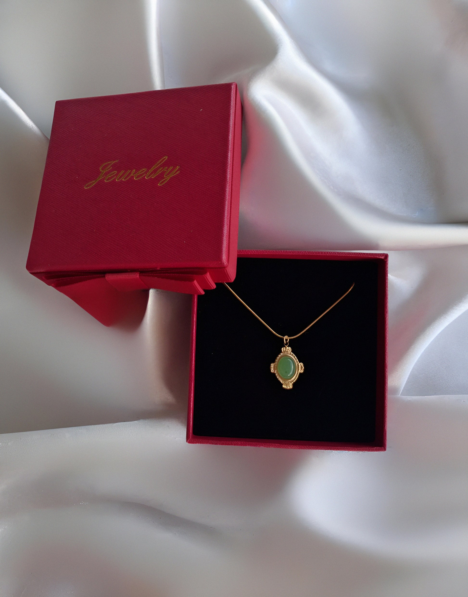 Jade Vision kolye, yeşimin huzur verici enerjisini altın işçiliğin zarafetiyle buluşturan büyüleyici bir parça. Oval formundaki yeşil taş, etrafını saran kabartma desenlerle çevrilenerek klasik bir estetik yaratıyor. Yeşimin doğal iyileştirici gücü ve altın çerçevenin koruyucu enerjisi birleşerek dengeli bir aura sunuyor. Her bakışta farklı bir derinlik keşfettiğiniz bu zarif kolye, iç huzur ve berraklığın simgesi olarak günlük hayatınızda size rehberlik edecek.
